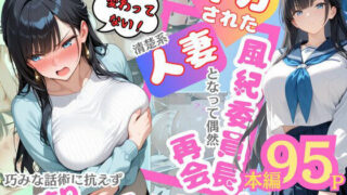 人妻まどか元風紀委員長――だけど、すぐに濡れちゃうのはどうしてもやめられない! 夫の留守中に現れるのは、セフレと化した生意気な後輩・拓海。 「もうダメ…」なんて抗っても、ベッドの上ではやっぱり快感に流されちゃう。 そこにやってきたのが、なんと‘初体験の男’を名乗る新たな後輩・大輔! 「哀しいね、先輩の初めての男としては…」 大輔は容赦なくまどかの過去と股…