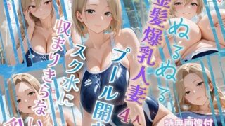マイクロビキニの布面積は、約50平方センチメートル。対する彼女たちの爆乳の表面積は――計測不能。 圧倒的に、布が足りない。 本作は、「布面積 vs 爆乳」という永遠に決着がつかない戦いを、プールという最高の舞台で徹底的に描き抜いたCGイラスト集です。4人の金髪爆乳人妻たちのオイルでぬるぬると輝く肌、重力と浮力に翻弄されるマイクロビキニ、そして水と光が織…